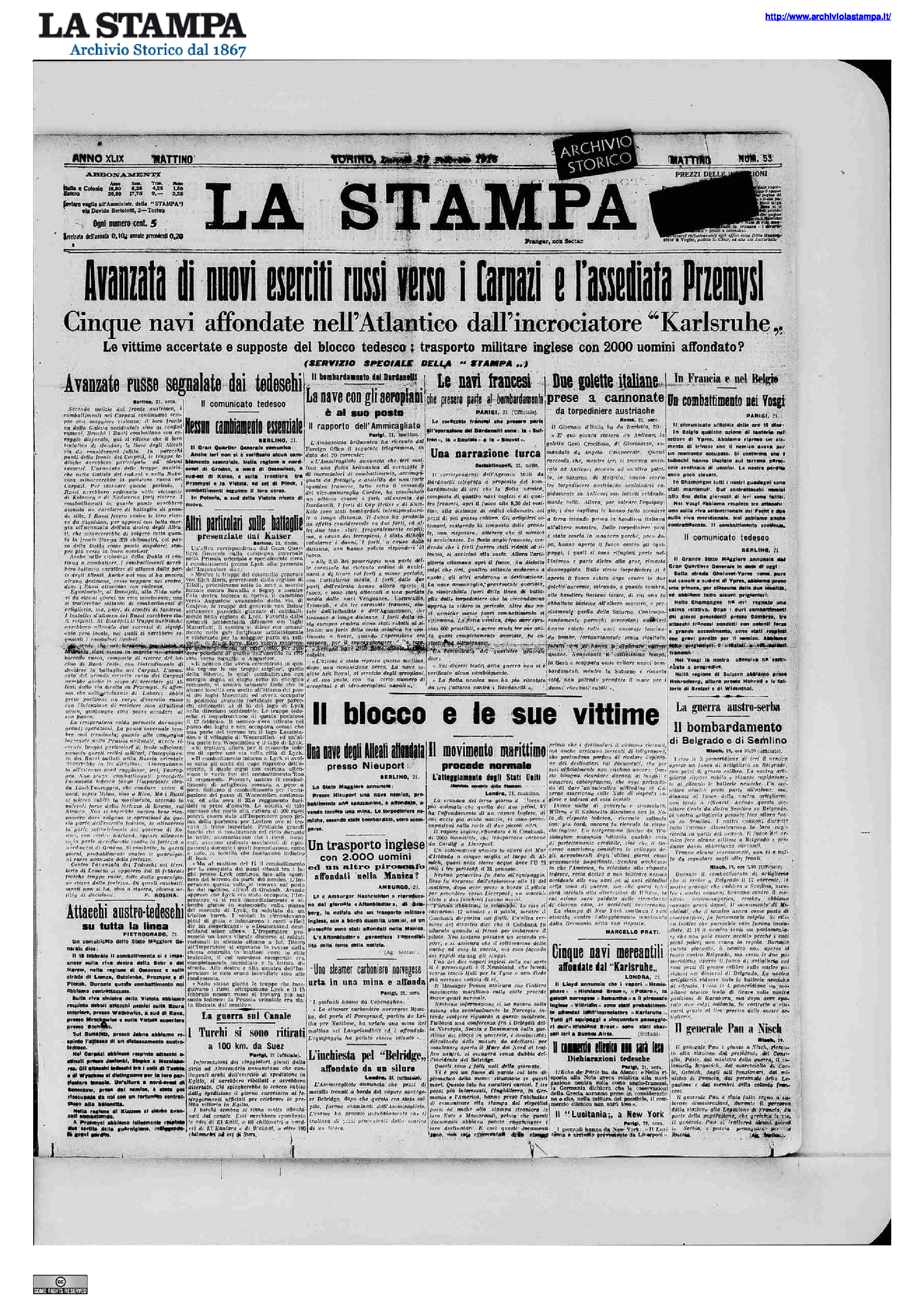 - Finisce la seconda battaglia dei laghi Masuri; i tedeschi catturano 100 mila prigionieri e 150 cannoni. La decima armata russa è sconfitta; circondati, i russi ripiegano sul Niemen (Nemunas).