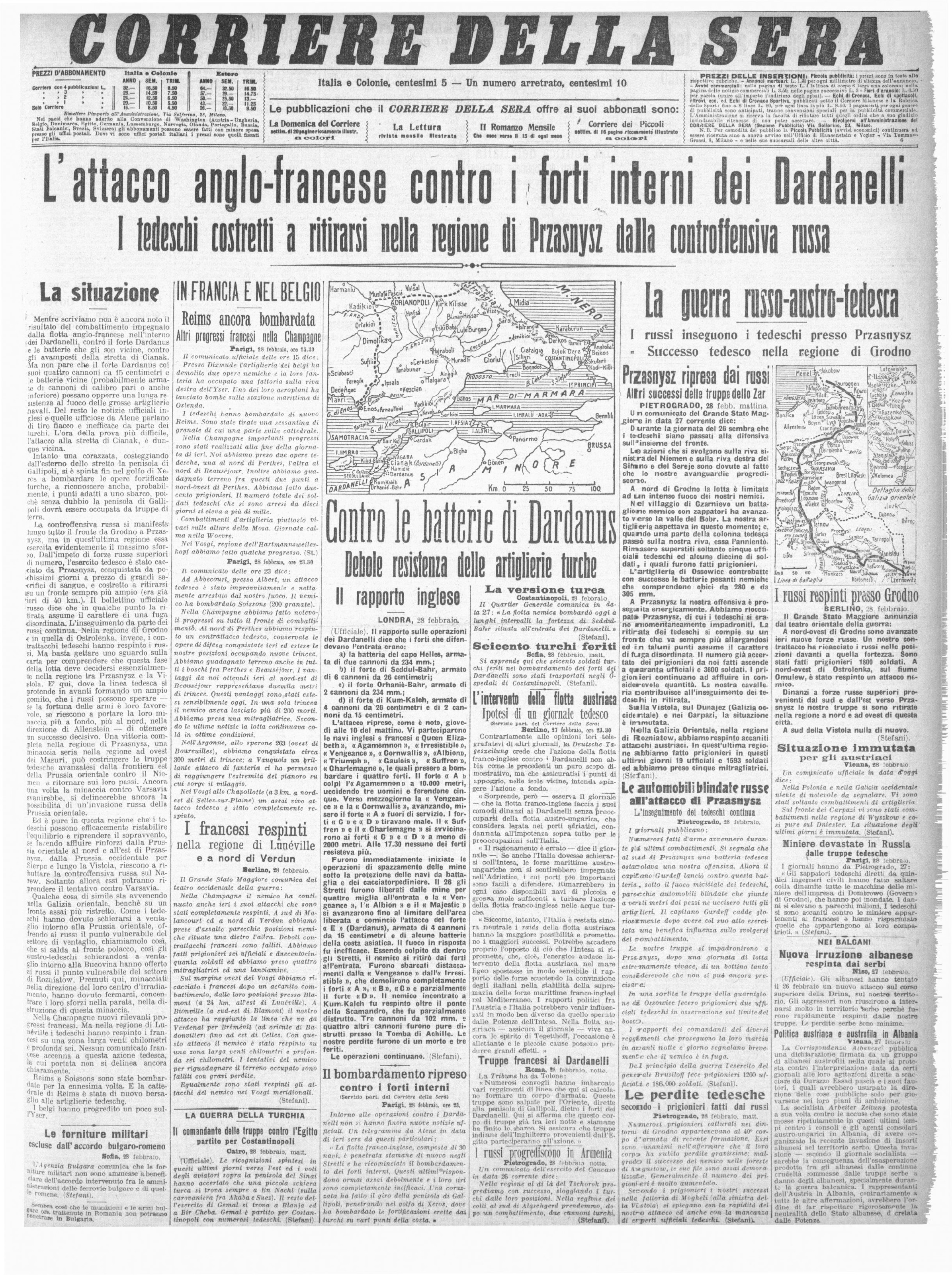- Alla Camera dei comuni Asquith accusa i metodi di guerra navale tedesca, che alla cattura sostituiscono la cieca distruzione. I Governi francese e inglese si considerano liberi di fermare e condurre nei loro porti le navi con mercanzie presumibilmente destinate al nemico o di proprietà o provenienza nemiche.