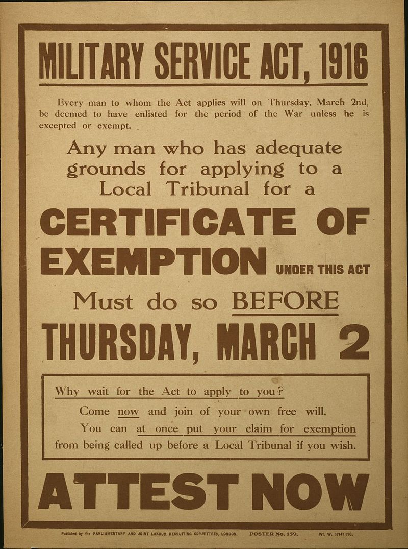 Il 5 gennaio il Premier britannico Asquith presenta al Parlamento la legge sul reclutamento obbligatorio: «Noi avremmo desiderato evitare la coscrizione, ma è stato impossibile. Questa legge è necessaria».