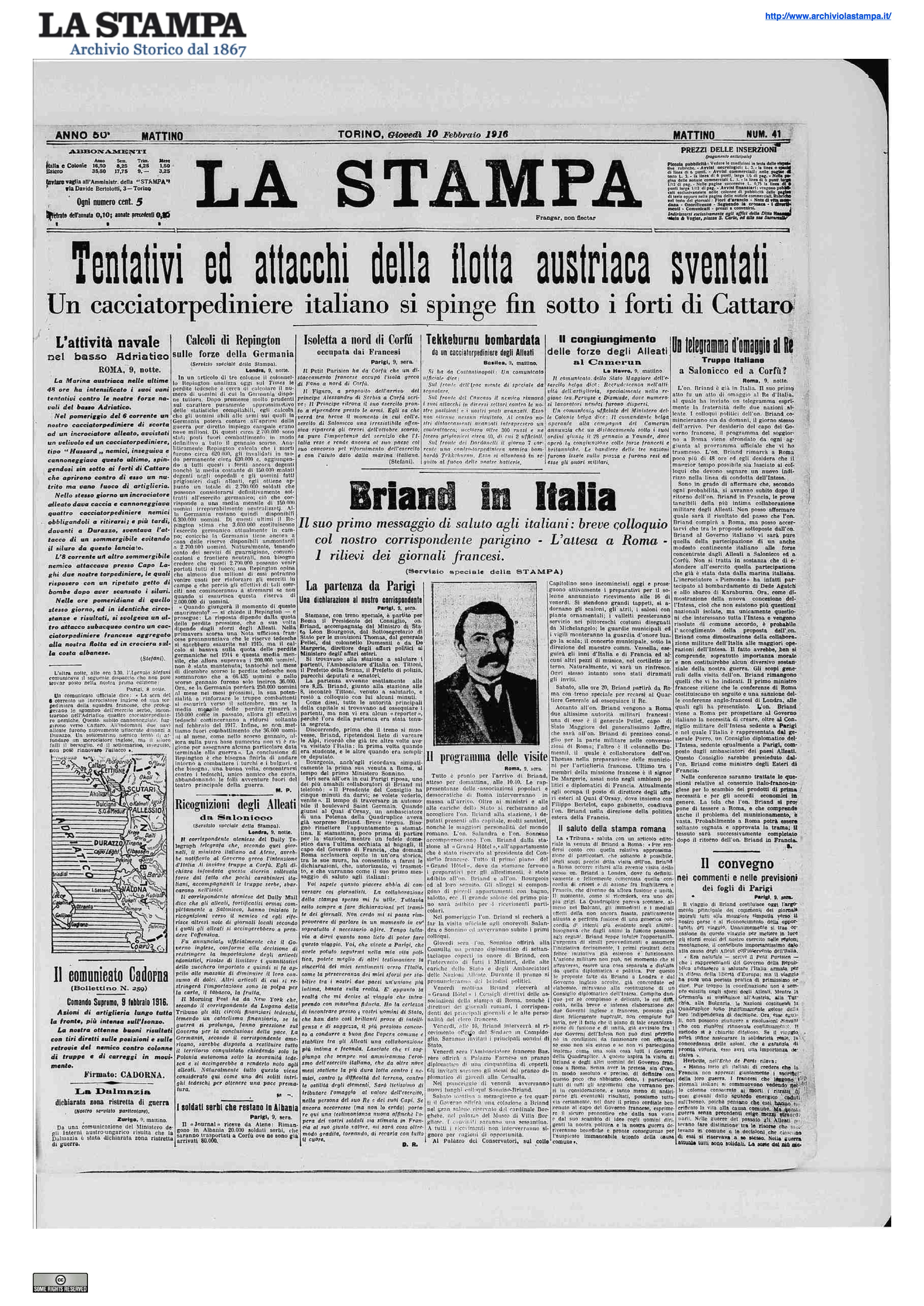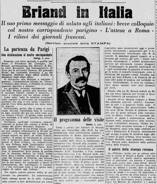 - Arriva a Roma il Presidente del Consiglio francese, Briand, per rinsaldare l'unione degli Alleati nell’azione per la guerra.