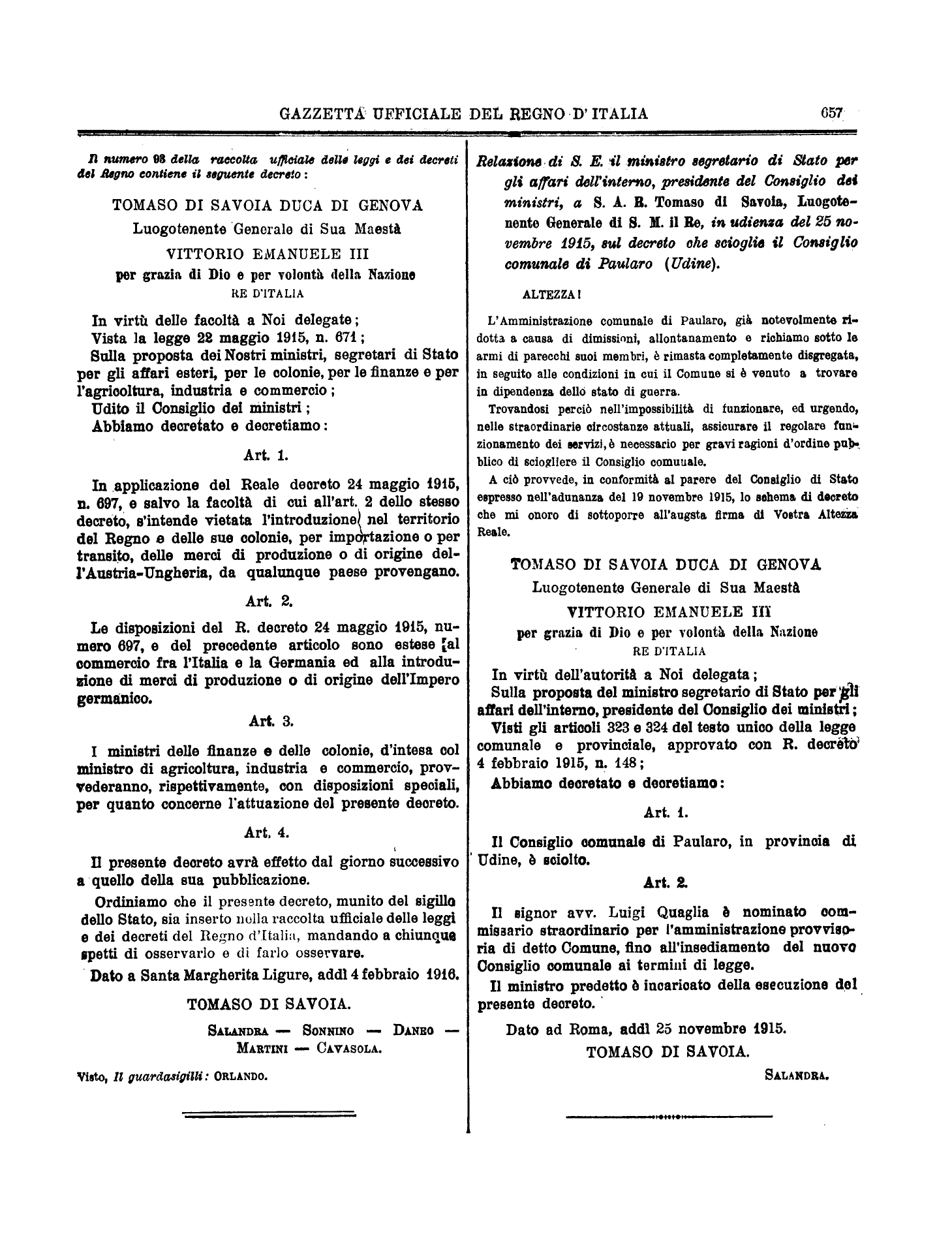 - Dato a Santa Margherita Ligure, addì 4 febbraio 1916.