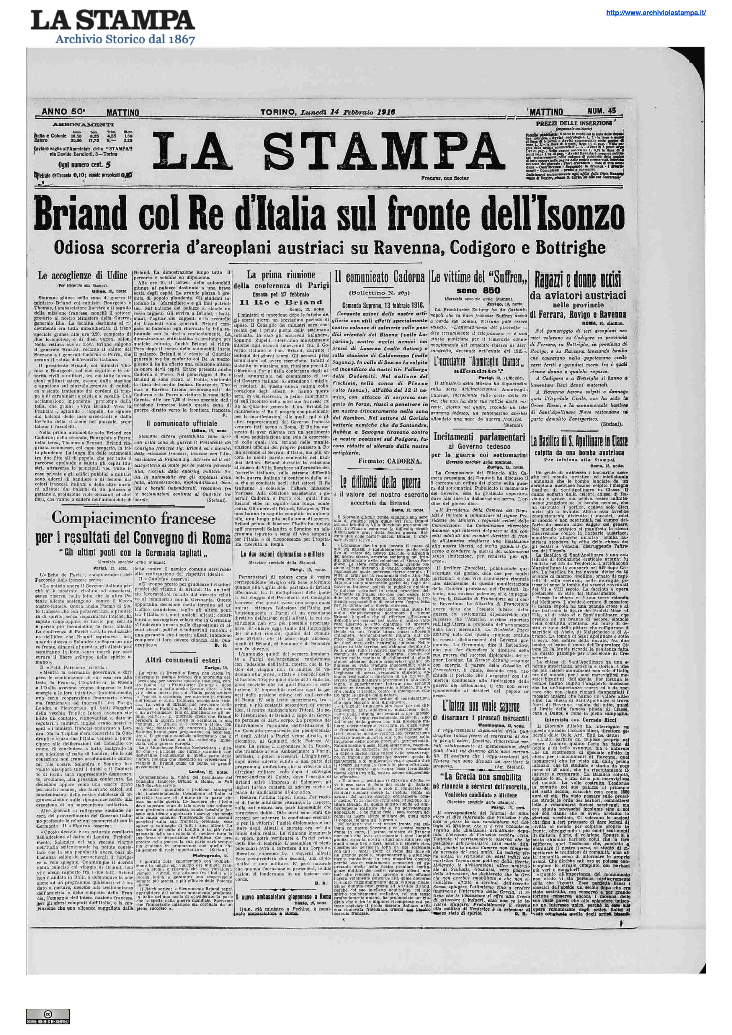 Alle otto e mezza del 14 febbraio aeroplani austro-ungarici sorvolano il bresciano. Vengono avvistati, ma alle nove, quando piombano su Milano, non è ancora stato dato l’allarme. È un lunedì mattina, le strade sono affollate e l’improvvisa attività della contraerea desta curiosità, in molti escono a guardare e non è una grande idea. Il cielo è limpido, le uniche nuvole sono quelle dei proiettili andati a vuoto, sbuffi chiari su sfondo azzurro.