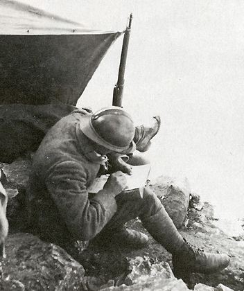Ancora vivo perdura il mio ottimo stato di salute con cui mi auguro di tutti voi. Non ò niente da aggiungerti alle mie antecedenti e nessun risultato ti posso dare riguardo all’avanzata avvenuta il giorno 12 perché eravamo in rincalzo solo debbo dirti che quando ci siamo fermati a sera in un punto del monte dove dietro ne avevamo un’altro più alto e roccioso à incominciato ad imperversare furiosa l’artiglieria nemica dei grossi proiettili contro questa roccia dove grossissimi massi ruzzolavano su di noi. Cara Madre credi che anche questa volta mi posso chiamare fortunato perché un grosso proiettile è andato a sbattere contro questa roccia facendo cadere un grossissimo sasso che a corsa vertiginosa ruzzolava per la vallata e che poteva dare maggiori conseguenze se fosse stato più scuro ma pur troppo due che si trovavano a me vicini sono morti senza proferir parola mentre io ò avuto il tempo appena di allontanarmi di qualche passo rimanendo salvo per miracolo però il posto che io occupavo gli alberi che vi erano sono stati completamente sbarbati.