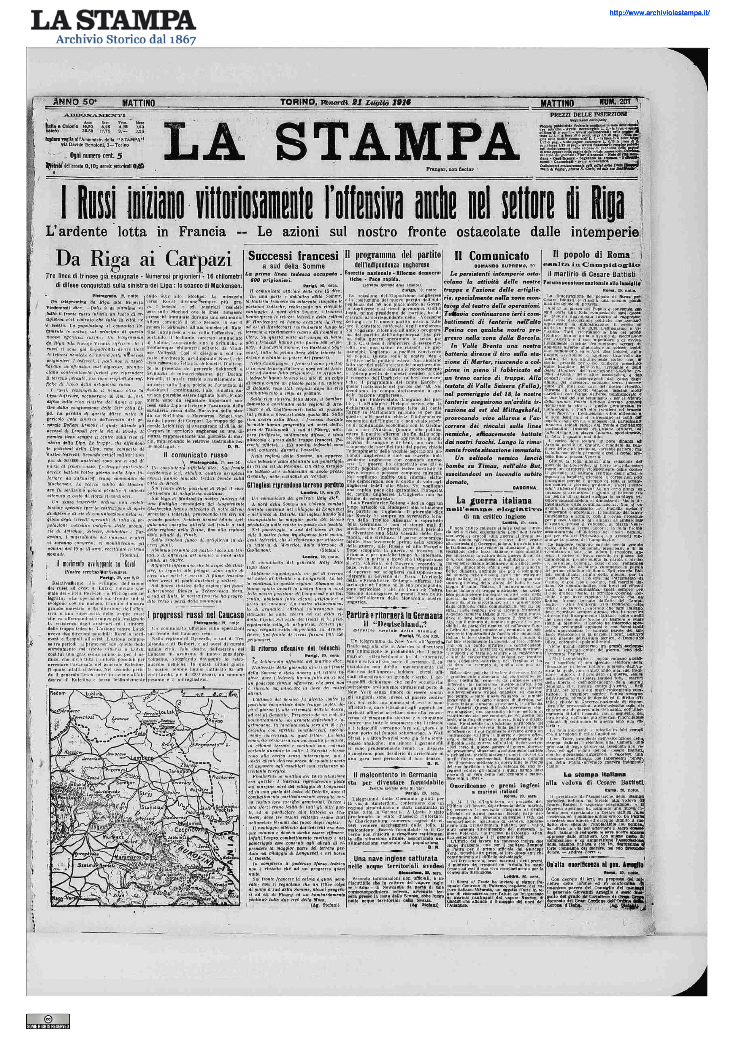 - I russi spingono gli austro-tedeschi oltre il fiume Styr; annunciati 14.000 prigionieri.
