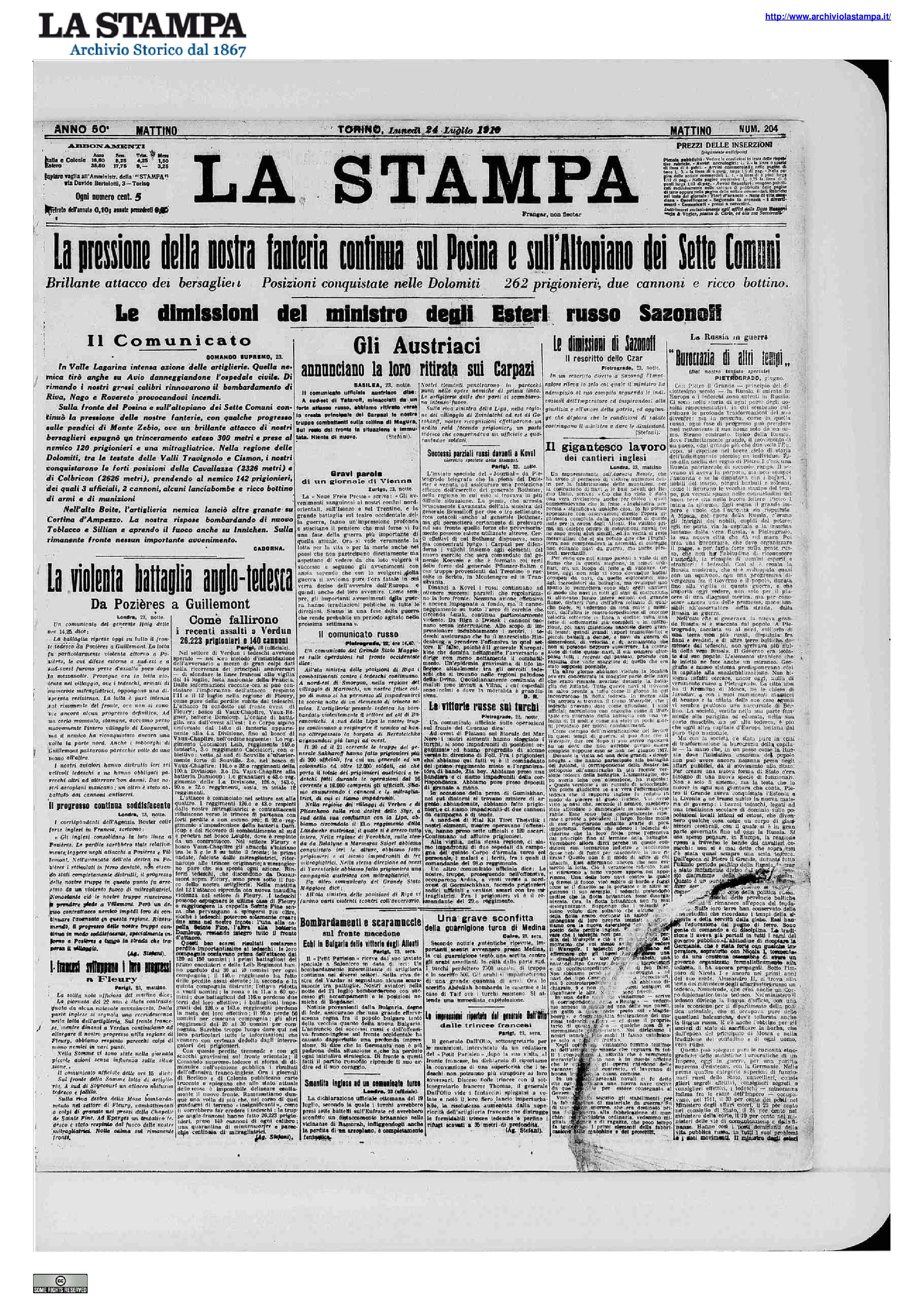 - Continua la lotta per Pozières: i britannici guadagnano vantaggi importanti.