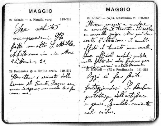 Notte brutta, sempre dolori al ventre; bevo l'olio di ricino. Vado all'osservatorio a prendere la branda che servirà per me.