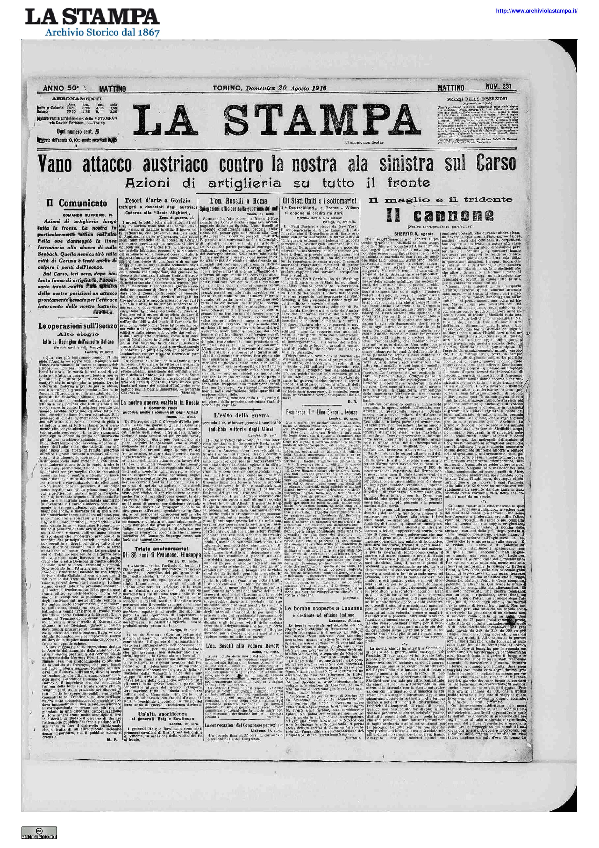 Il 20 agosto rientra a Cattaro il sottomarino tedesco U-35, una “bestia nera” delle marine Alleate: nella sua ultima uscita mediterranea il Comandante Lothar von Arnauld de la Perière avrebbe affondato 54 imbarcazioni, molte italiane.