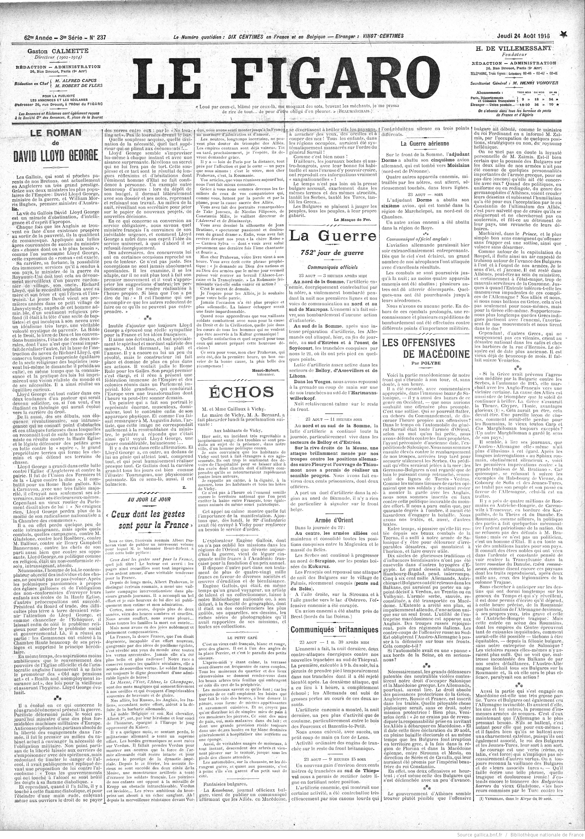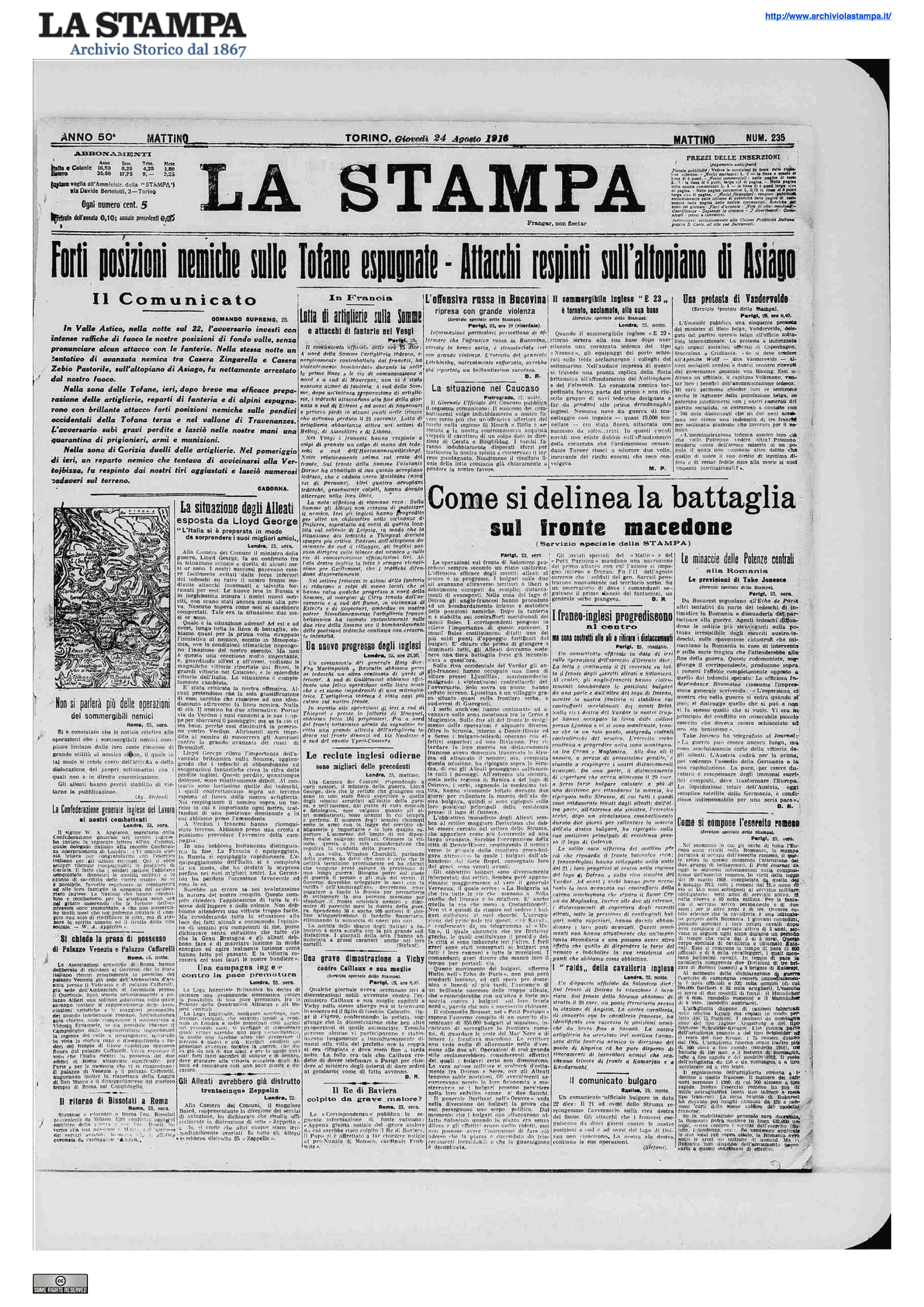 Sui giornali del 24 agosto il nuovo fronte balcanico è il più chiacchierato. Le diversioni bulgaro-tedesche ai fianchi non preoccupano l’Intesa; l’azione principale si svolgerà tra Dojran e Serres, dove le redini sono in mani Alleate.