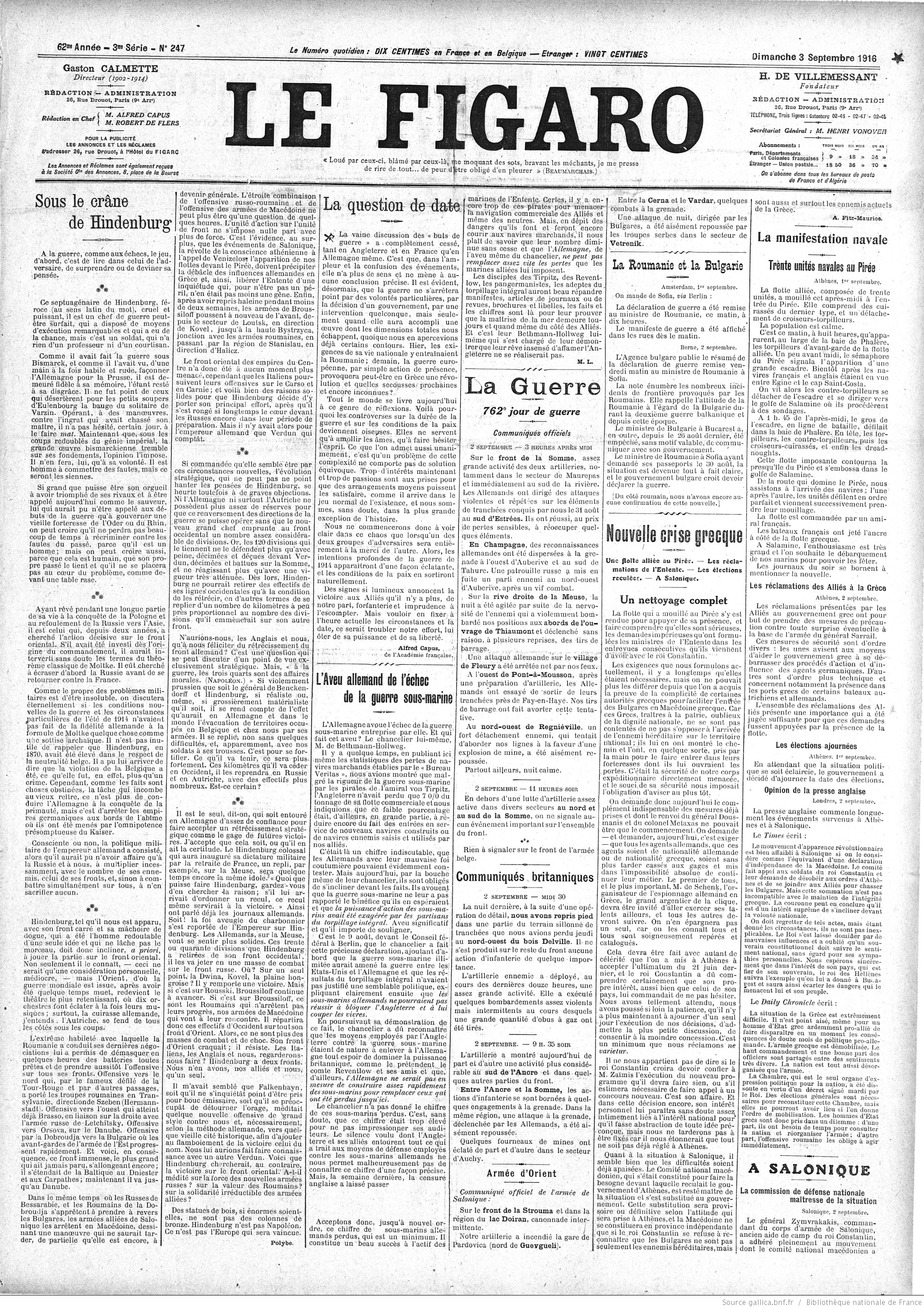 Sul fronte occidentale si sono concluse le battaglie di Pozières e Delville, ma c’è l’offensiva rumena da supportare, impegnando i tedeschi. Ristabilitosi il bel tempo, il 3 settembre gli Alleati avviano la terza fase della battaglia della Somme: a nord del fiume i britannici prendono Guillemont e buona parte di Ginchy; qualche chilometro più a sud i francesi occupano Cléry-sur-Somme e il villaggio di Leforest, a est di Maurepas.