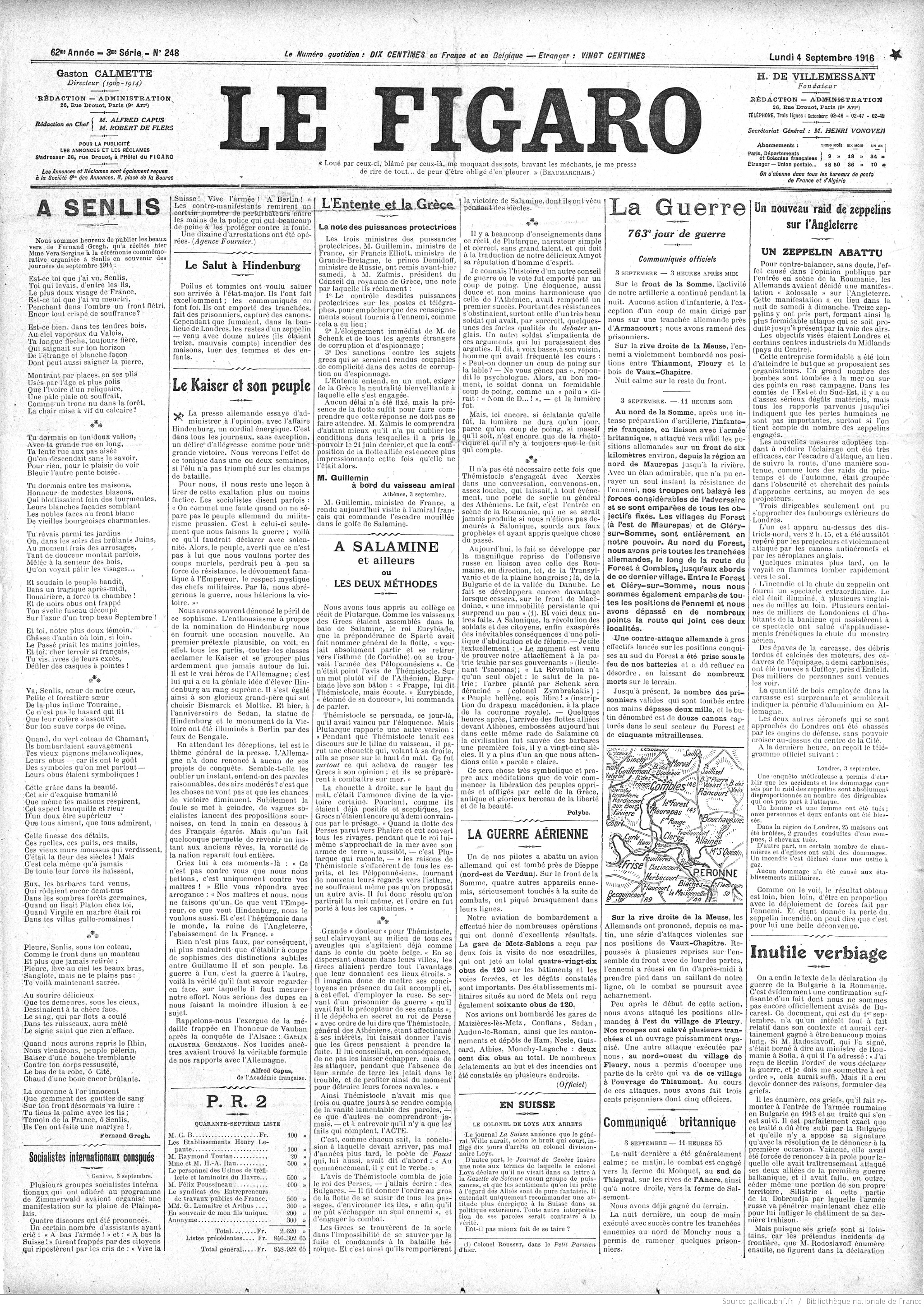 • Le truppe franco-inglesi fanno progressi: le prime nel sistema fortificato di Cléry-Leforest; le seconde, nella zona Guillemont-Glinchy.