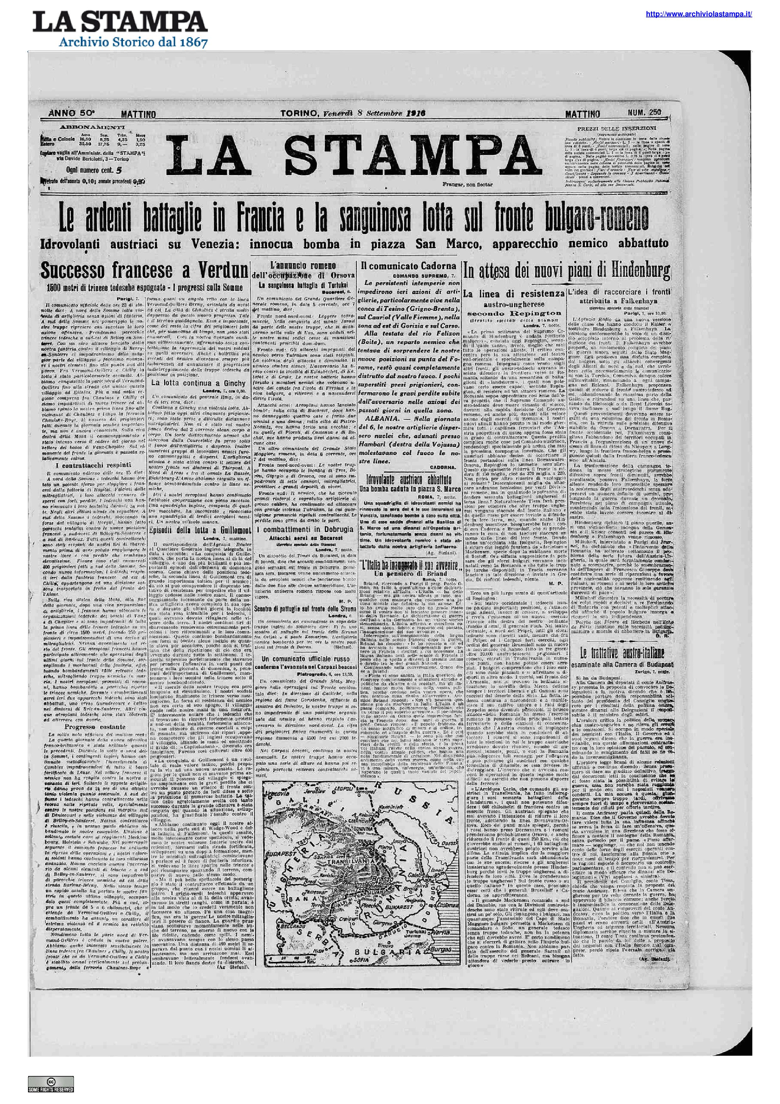 Senza contare il fronte rumeno, lasciato sguarnito dagli austro-tedeschi e preso in contropiede dalla fulminea azione di Bucarest. Servirebbero rinforzi, «ma Cadorna e Brusilov sono pronti a sfruttare ogni occasione. L’aver perso i fondamentali snodi ferroviari al confine transilvanico rischia di minare in partenza l’intera campagna invernale».