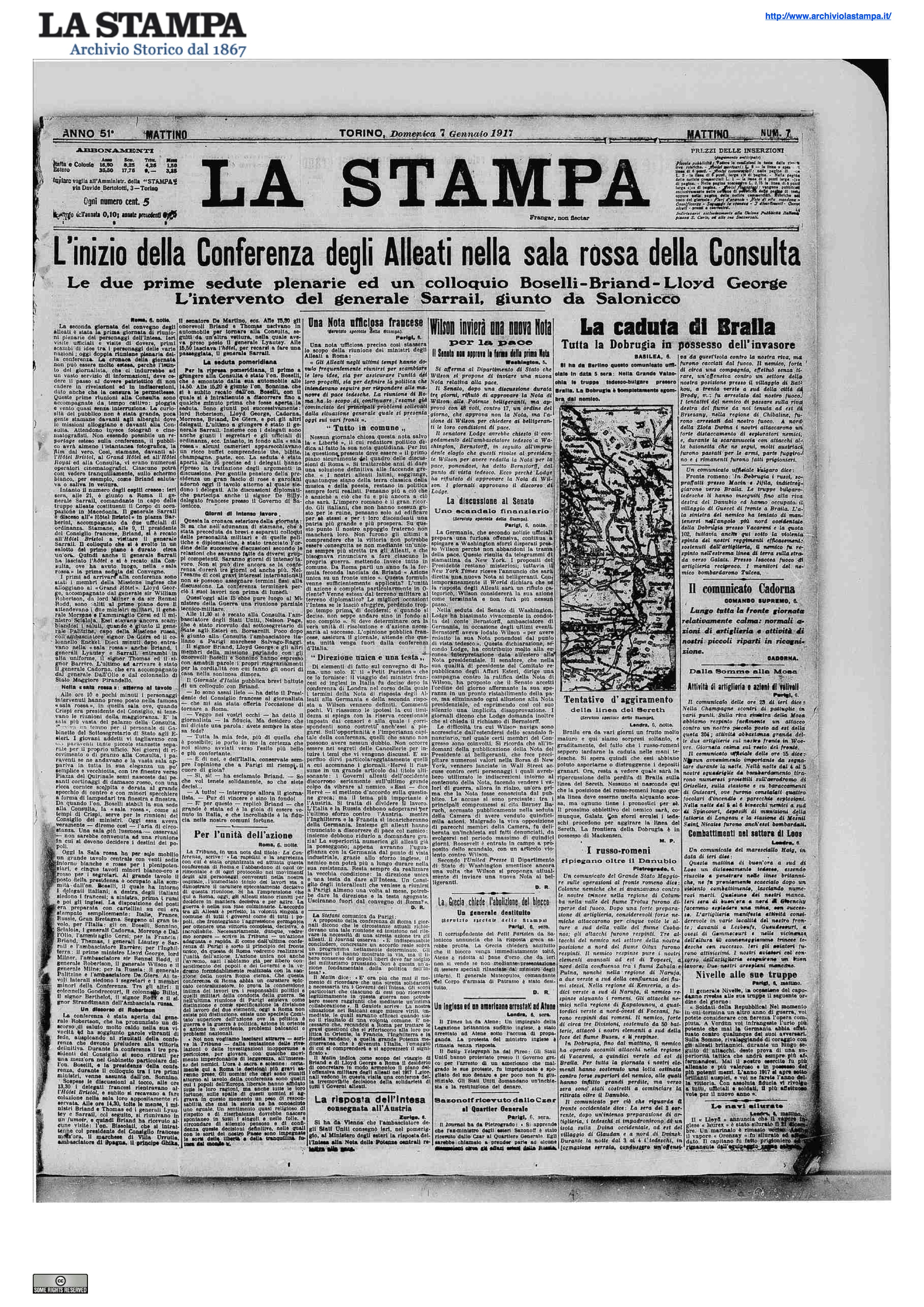 Accordo completo, maggior coordinazione, incrollabile fiducia nella vittoria finale. Sono queste le uniche indiscrezioni uscite il 7 gennaio dal convegno interalleato di Roma, un po’ perché la riservatezza è d’obbligo, un po’ perché qualsiasi ulteriore indagine sarebbe stata frustrata dalla censura. Ma tra il dire e il fare c’è di mezzo il mare. L’Intesa non è così concorde come vuol far credere. Per esempio non sa cosa farne del regno austro-ungarico: stando al principio di nazionalità verrebbe smembrato, sollevando questioni internazionali molto complesse, soprattutto nei Balcani. E qui vien fuori l’altro dubbio Alleato, messo in rilievo in particolare da certa stampa: «La vera trovata degli Imperi centrali è stata gettarsi a testa bassa nell’impresa rumena, dedicarle le migliori energie. Non si può non confrontare questi metodi con quelli adoperati dall’Intesa a Salonicco».