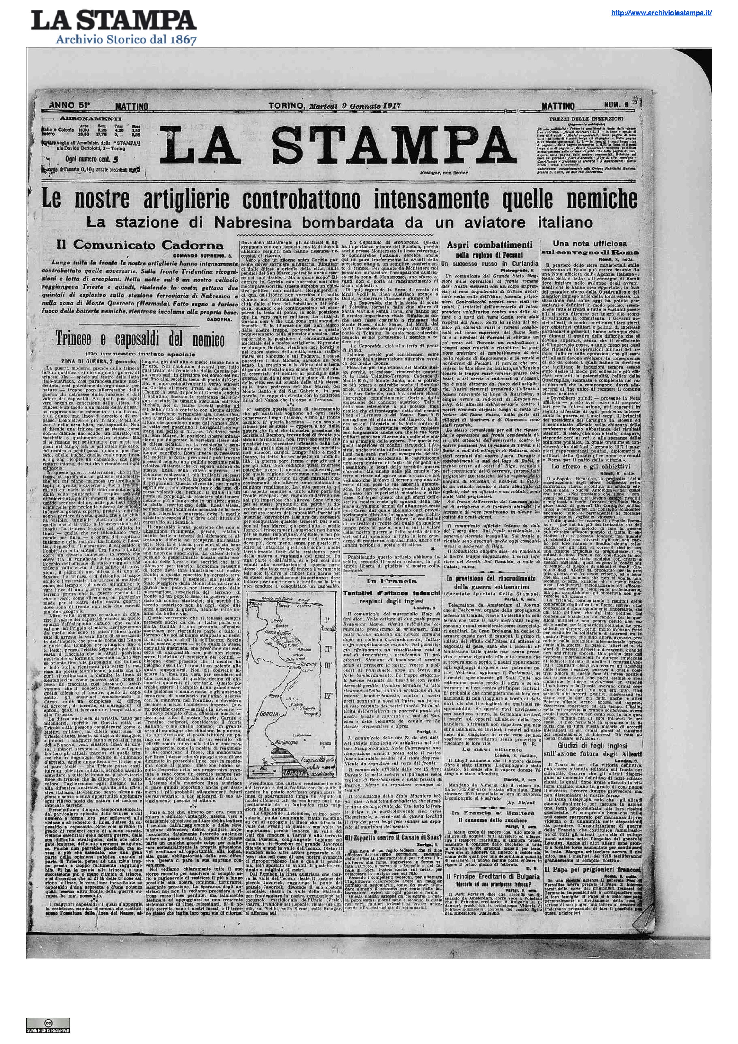Una nostra squadriglia bombardò con visibile efficacia obiettivi militari fra Rifemberga (Reifenberg) San Daniele e Cobdil nella valle della Branizza, affluente del Frigido (Vippacco).