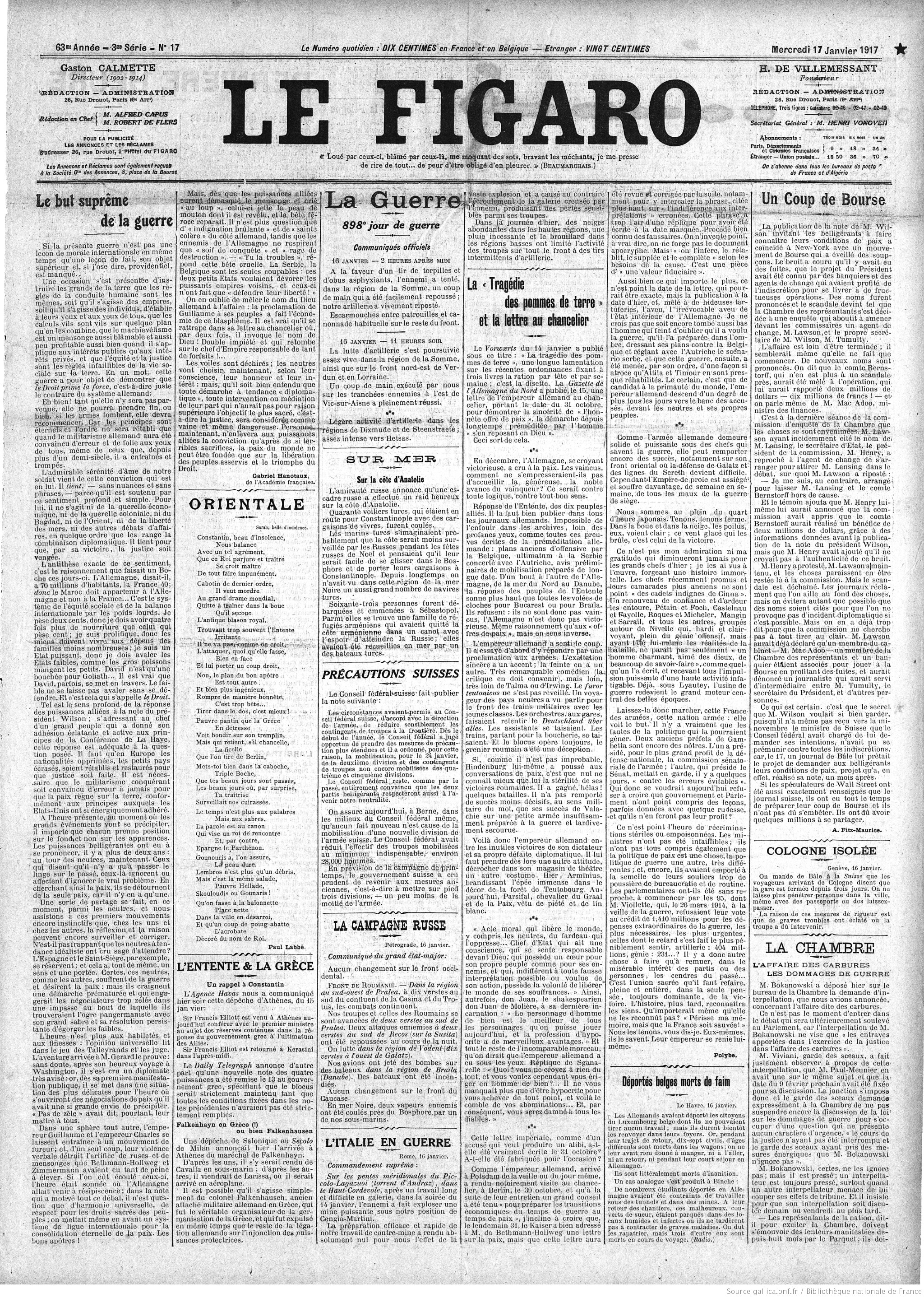 - Briand consegna ai Ministri dei Paesi neutrali la risposta dell’Intesa alle note associate alle proposte del Presidente Wilson per le trattative di pace.