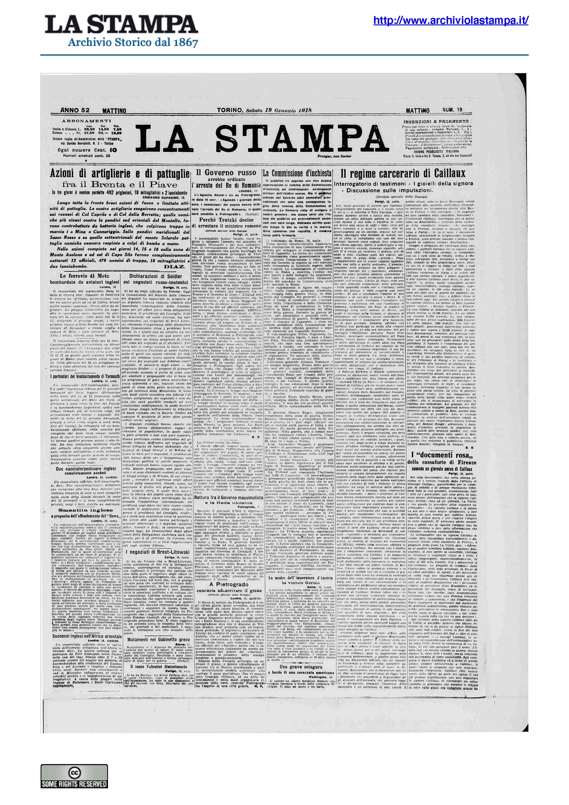 - Secondo un comunicato ufficioso da Brest-Litovsk, Trockij ha annunciato di dover partire per ragioni di politica interna e proposto di aggiornare i lavori sino al 29.