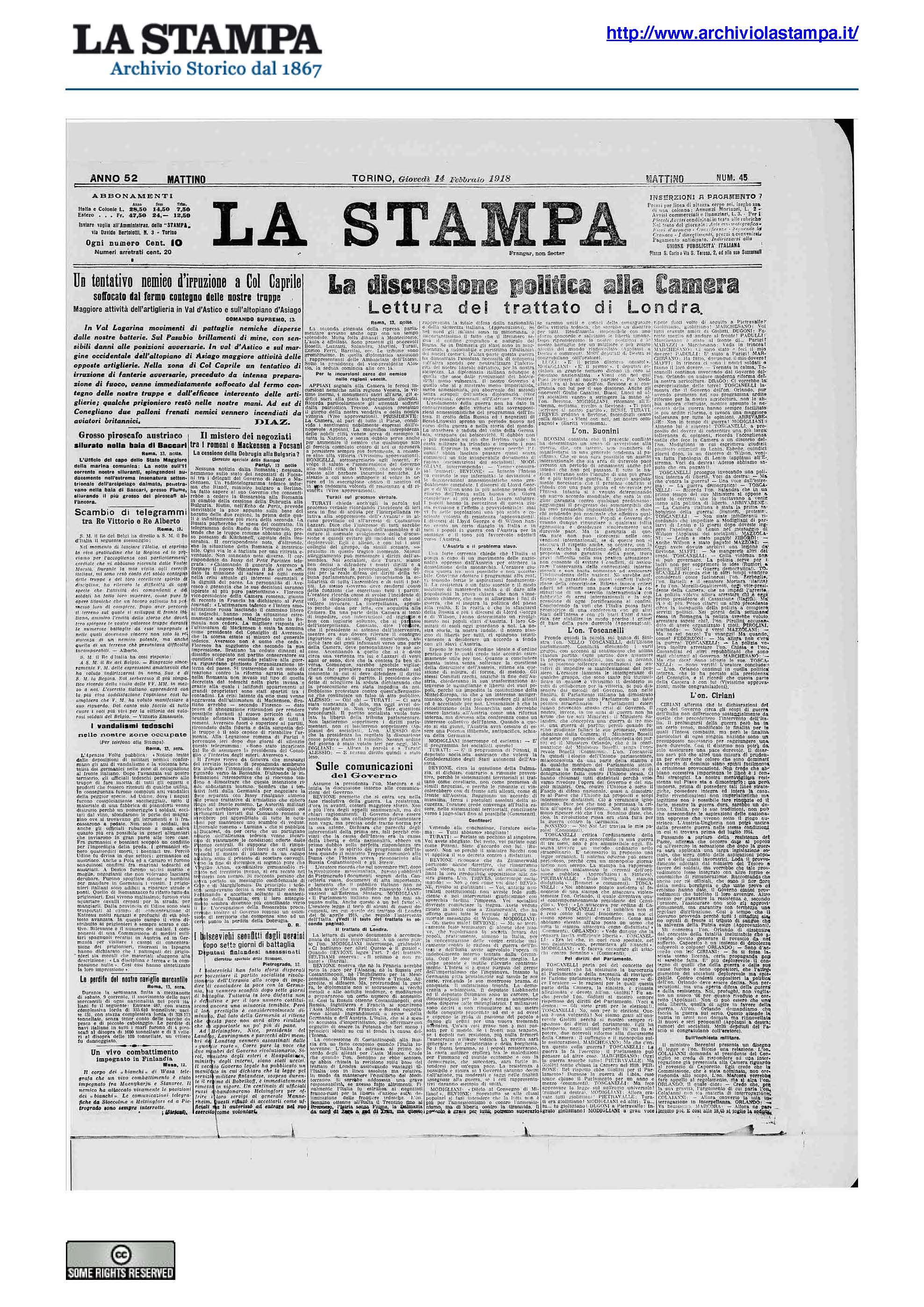 - È annunciata alla Camera l'interpellanza Colajanni che richiede la trasformazione dell'inchiesta su Caporetto in inchiesta parlamentare.
